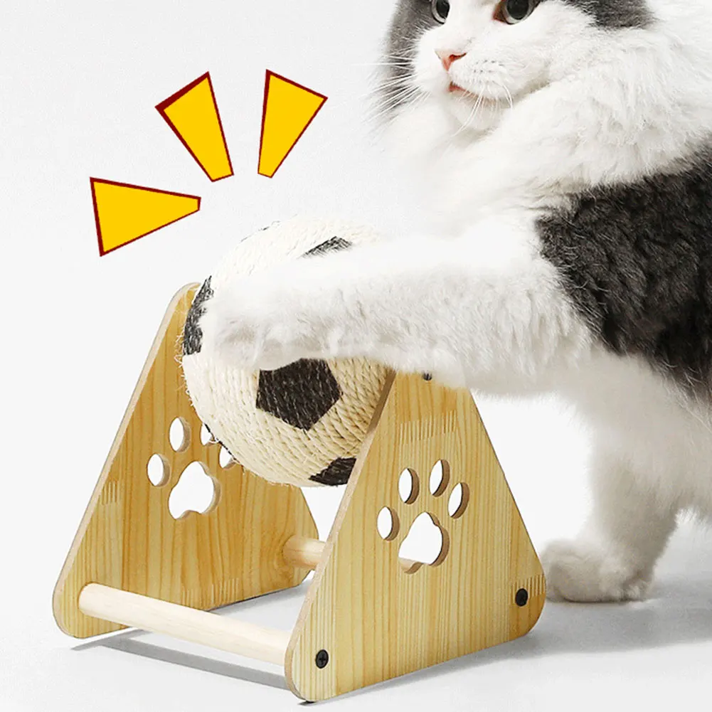 Triangular Wooden Cat Scratcher with Spinning Sisal Ball