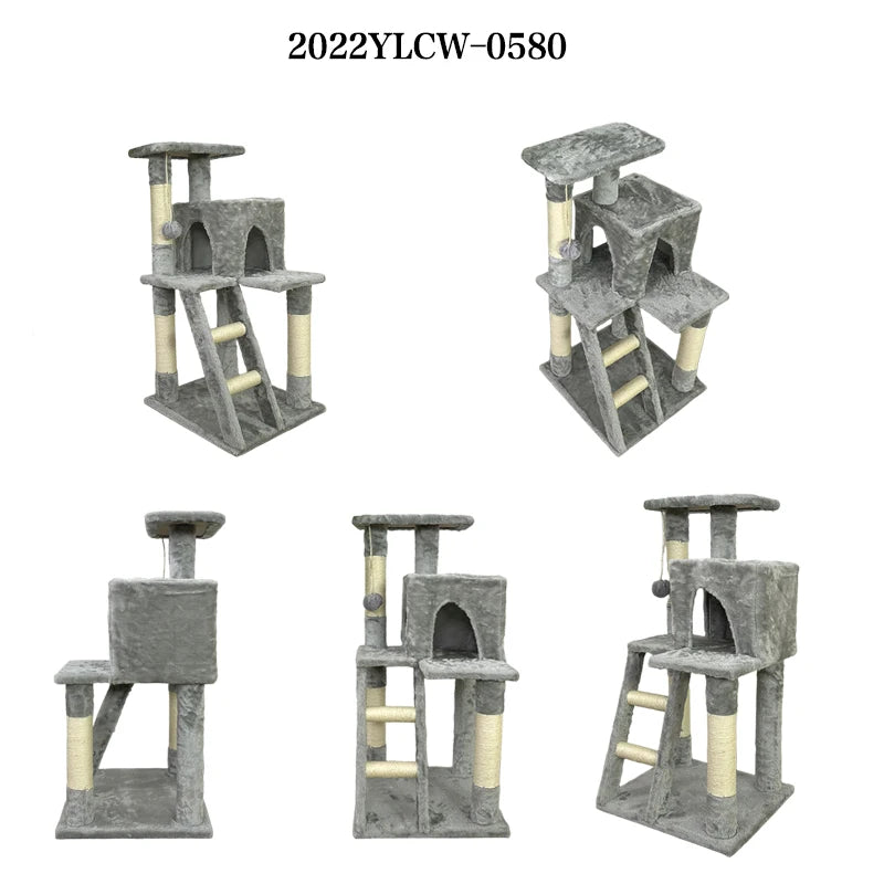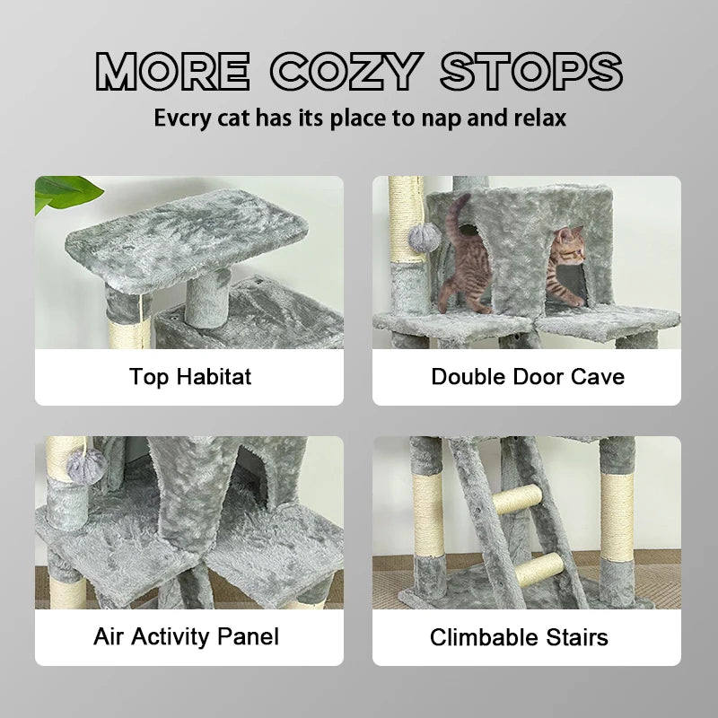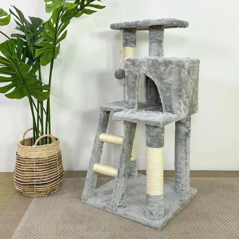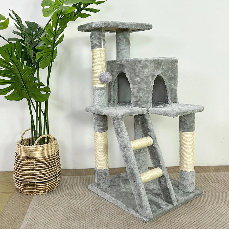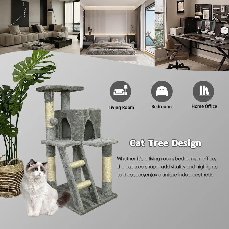 YXT Cat kitten tower with large modern widened perch, cute indoor multi-level cat activity tree, claw grinding post, small ramp