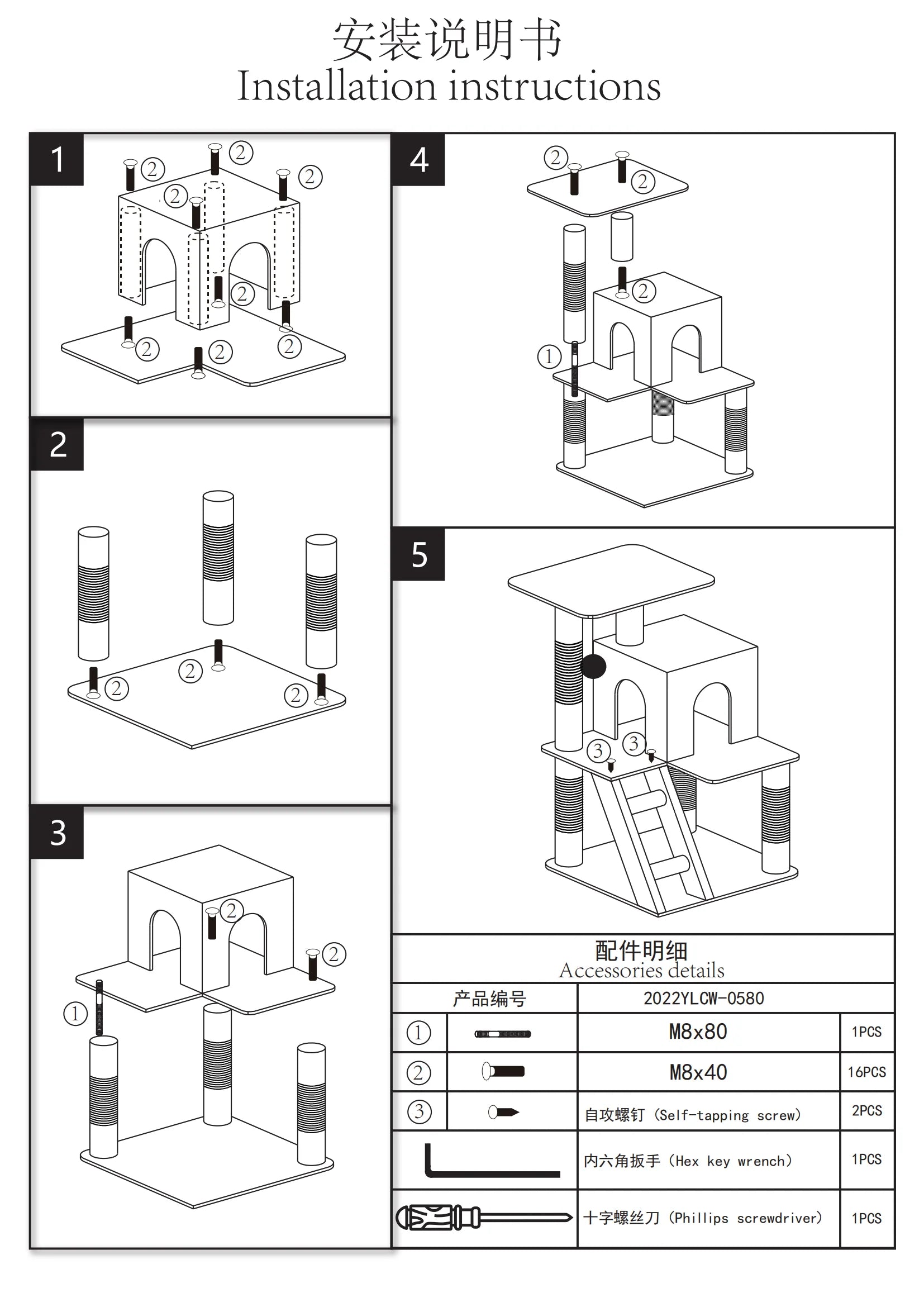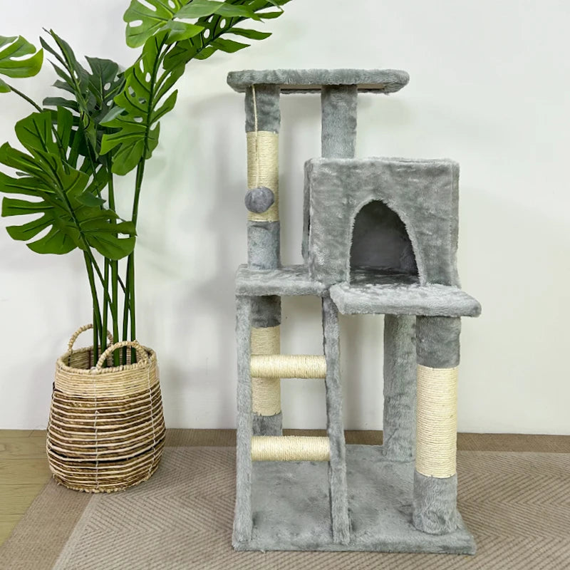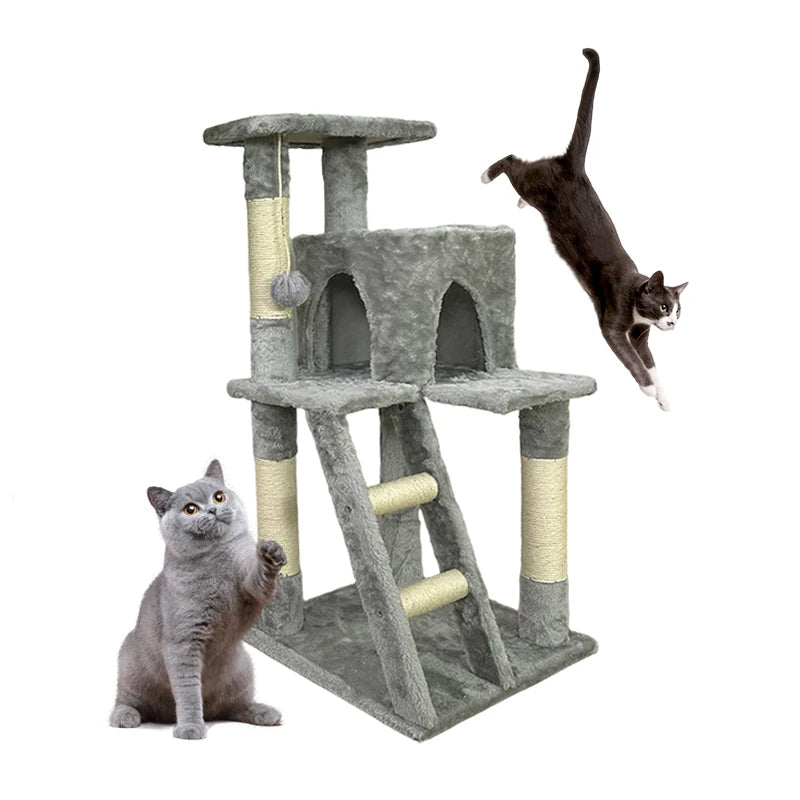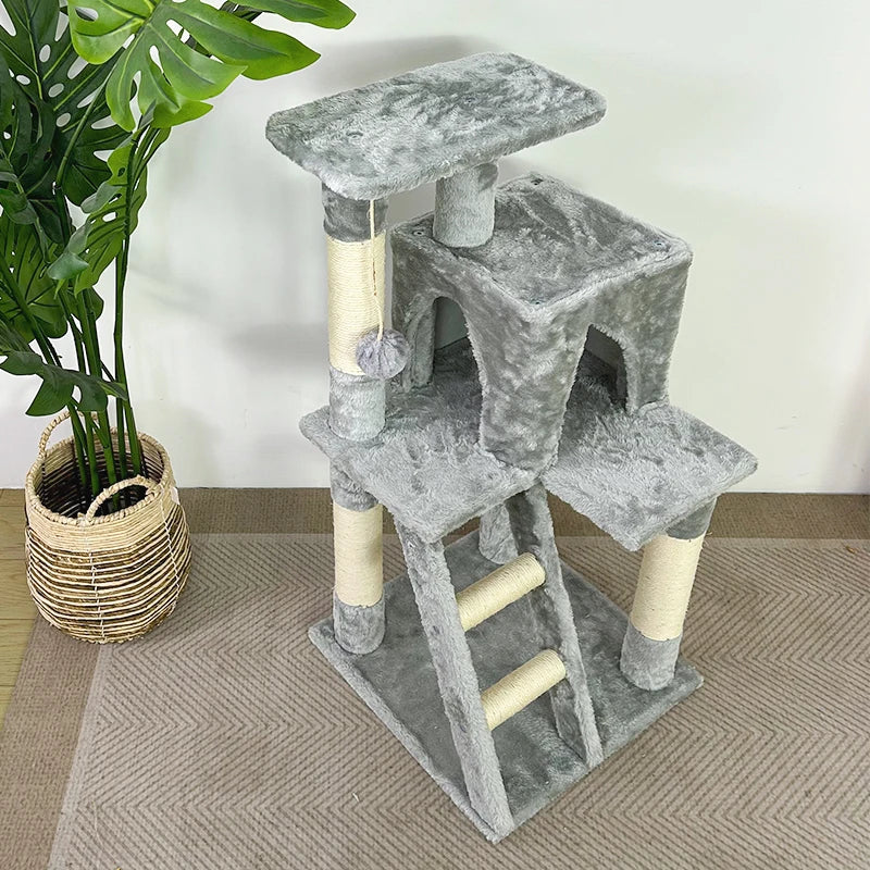 YXT Cat kitten tower with large modern widened perch, cute indoor multi-level cat activity tree, claw grinding post, small ramp